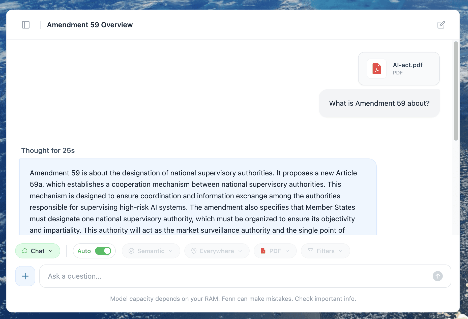 Fenn is Private AI that finds any file on your Mac. And it includes a Chat mode that lets you interact with your files, without sending your data to Google, OpenAI, or Anthropic.