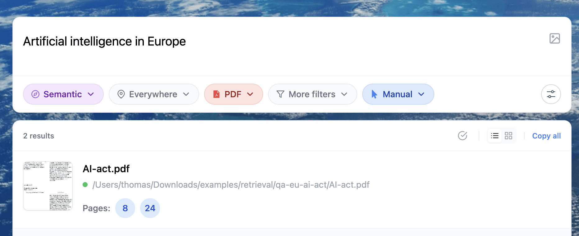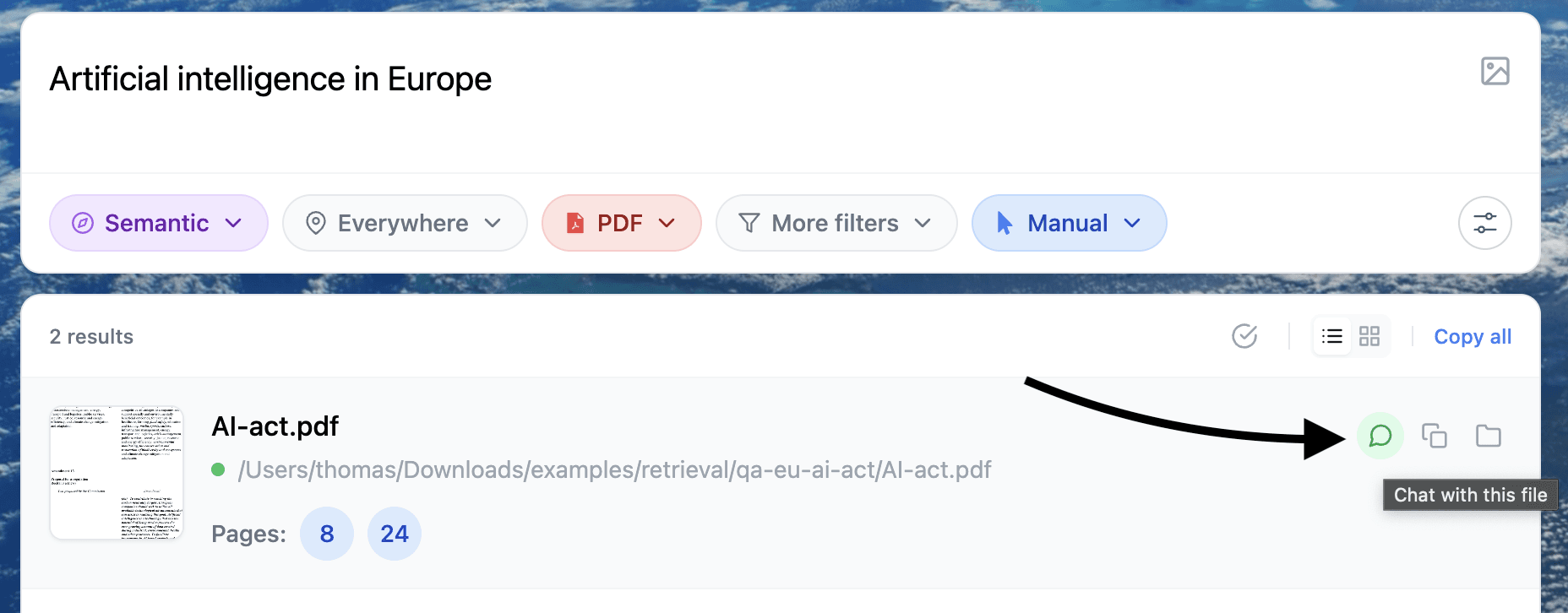 The simplest workflow: Search, then Chat with the file