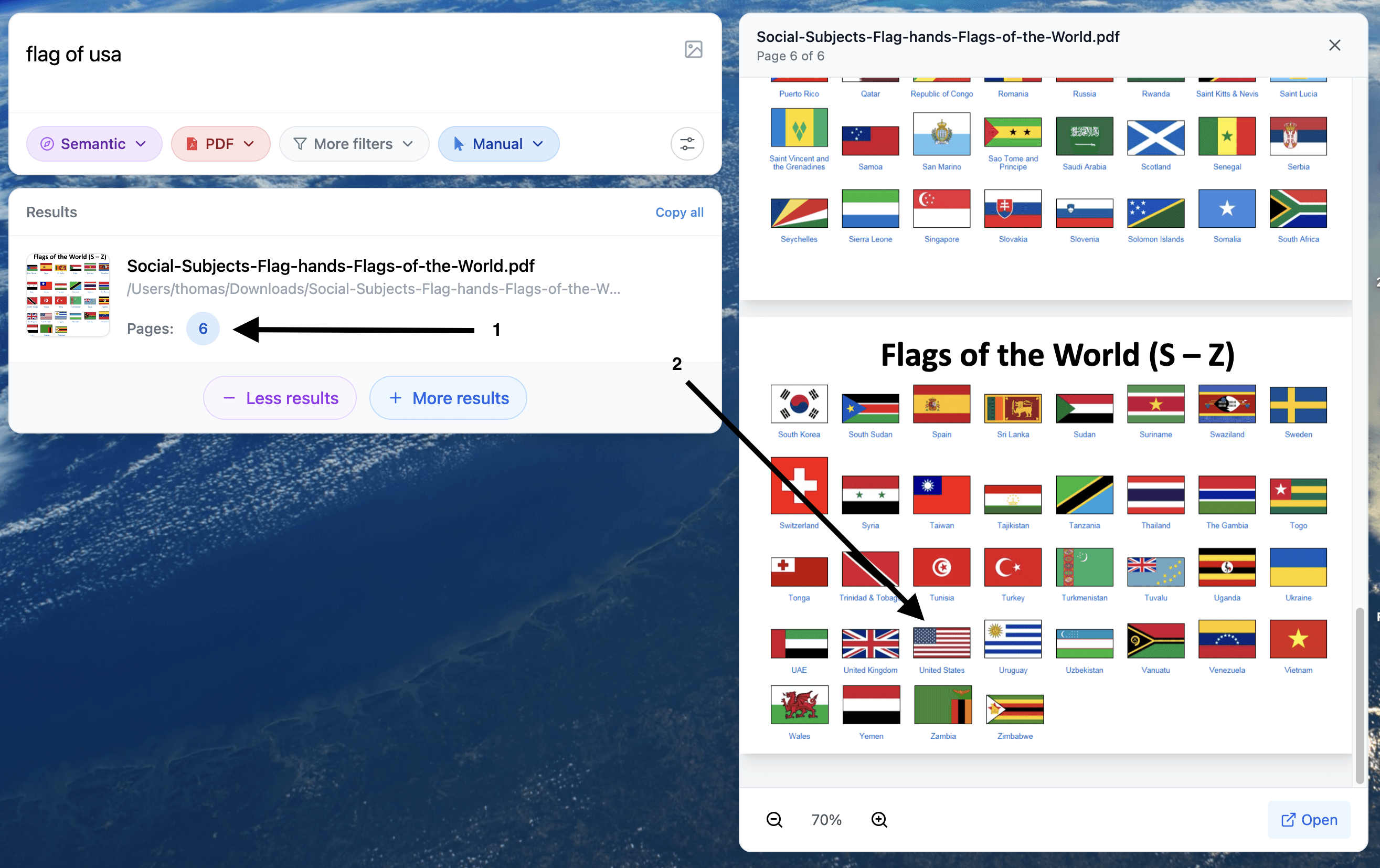 You want the specific page with context, not a list of filenames.