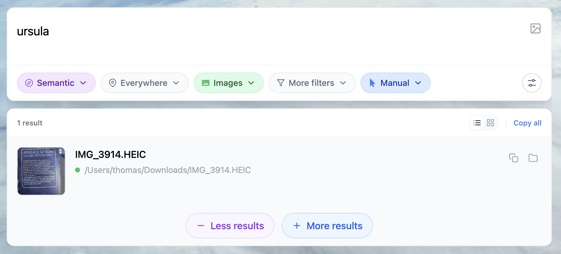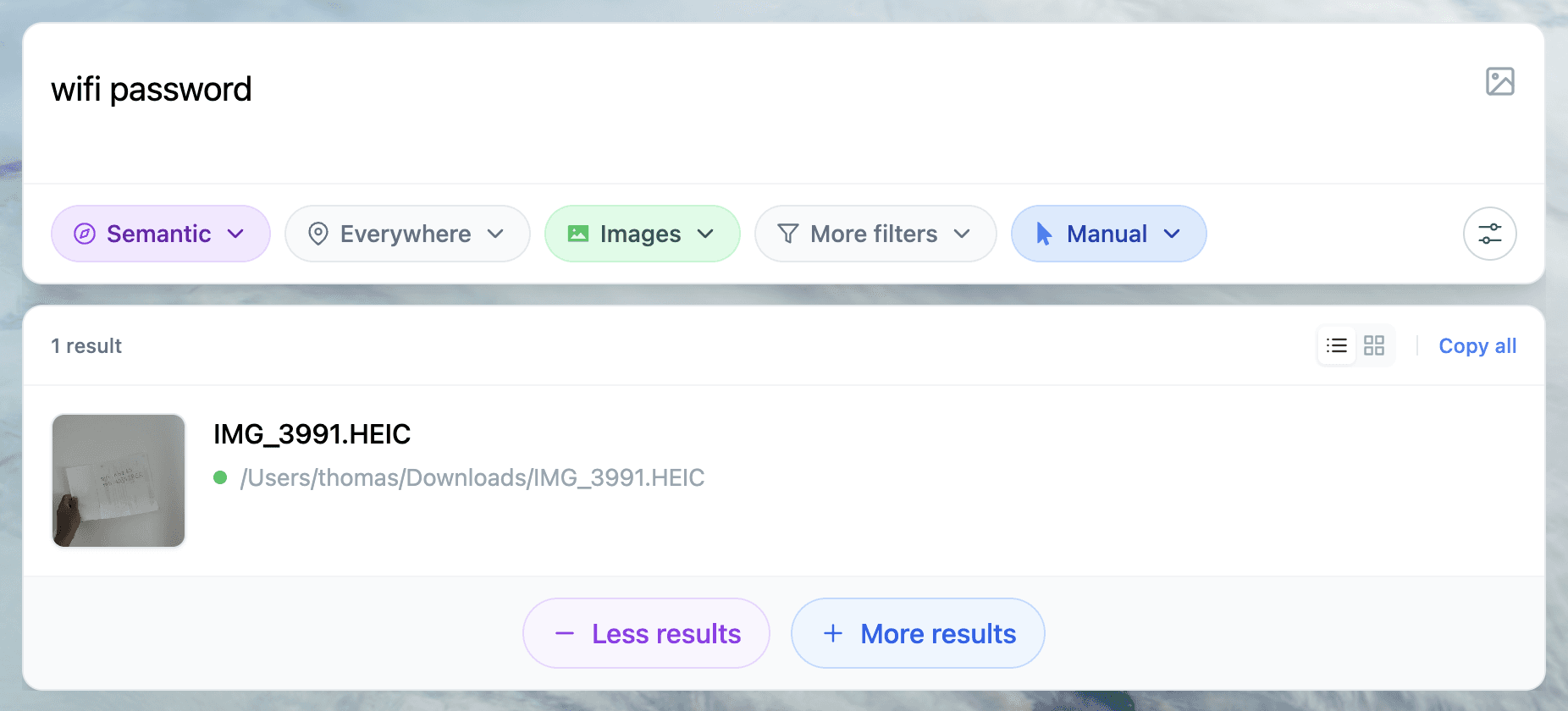 Traditional file search is great at filenames and metadata, but images and screenshots are different: